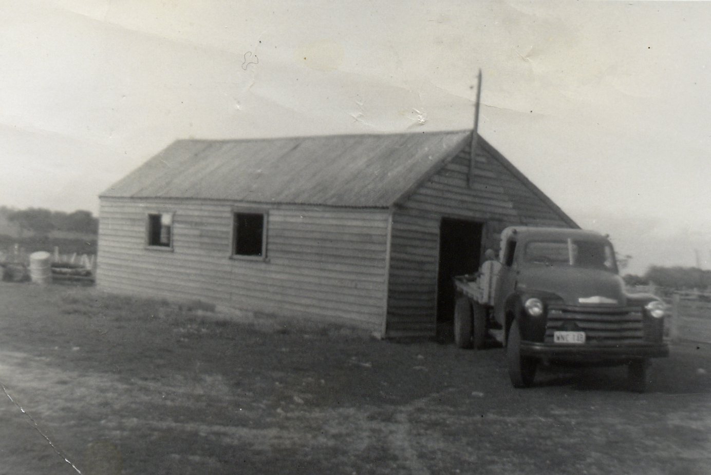 Old shearing shed with the Maple Leaf truck.