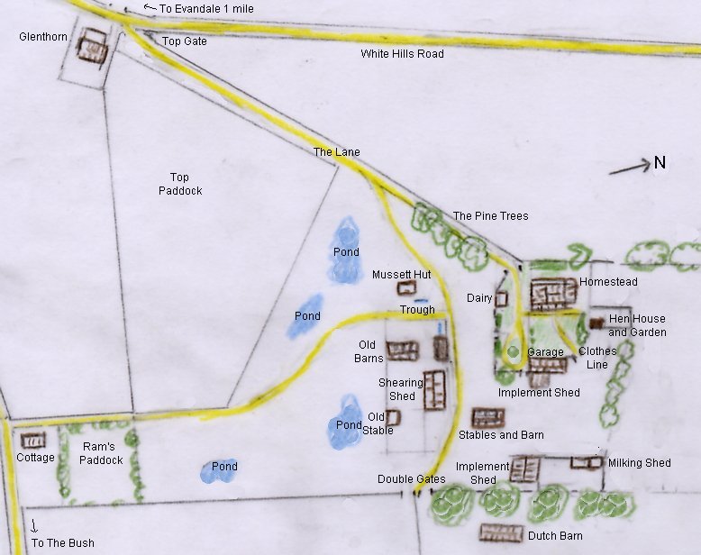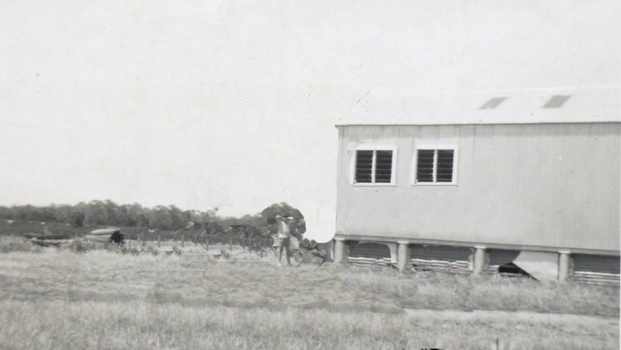 From back yard about 1958 looking towards the old shearing shed. (Edited photo)