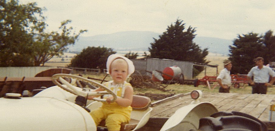 Auction Day - Implement shed. Louise Guest on the David Brown tractor sold to