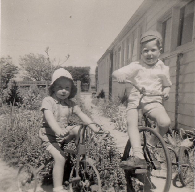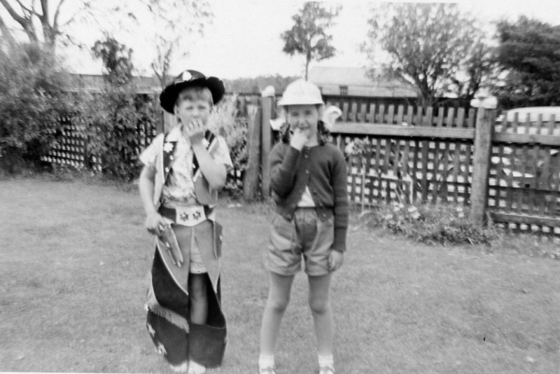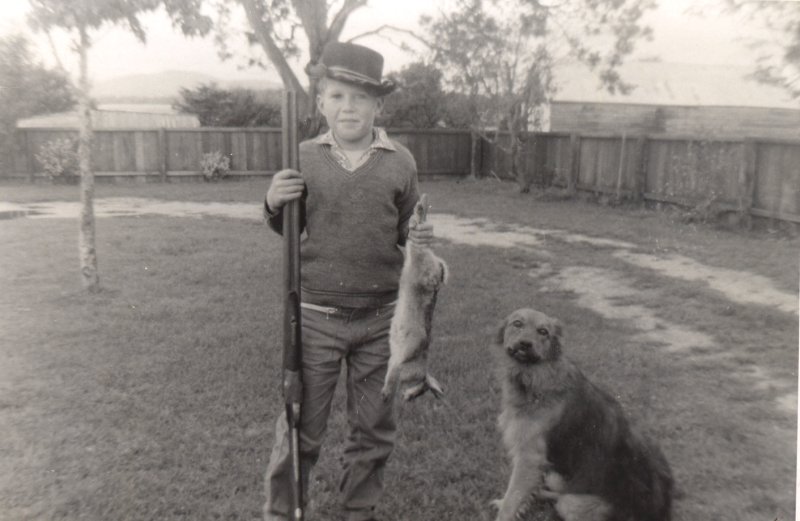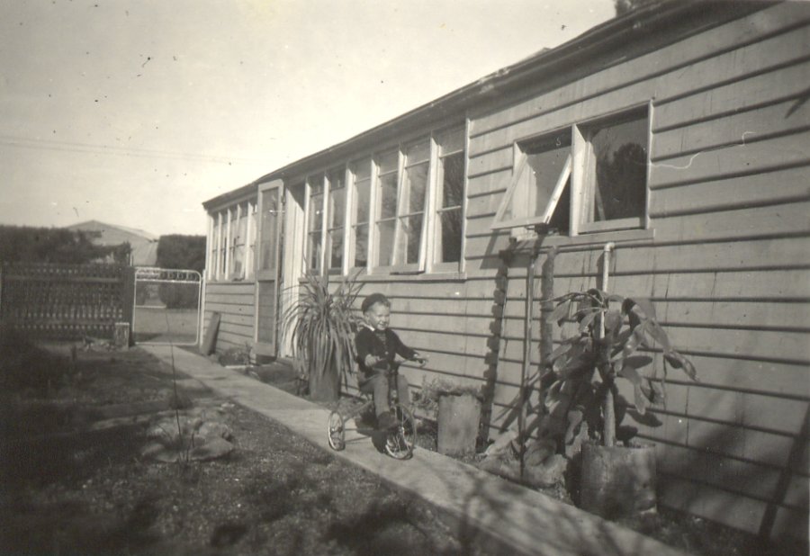With Penny Hart on View Bank lawn. Old Shearing shed in the