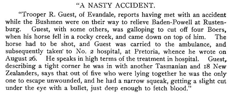 "Examiner" October 10 1901 and quoted in Tasmanians in the Transvaal War,