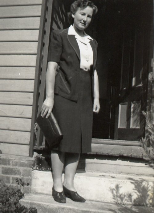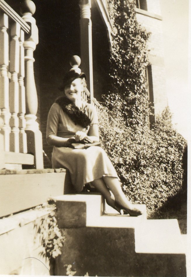Agnes on the front steps of Roslyn.