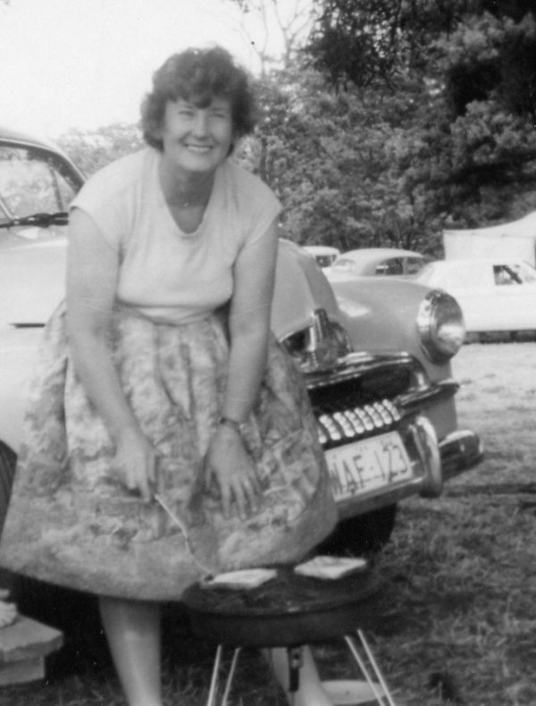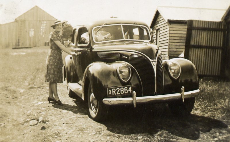 With her father's Ford V8 at Roslyn