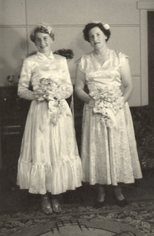 Matron of Honour at sister Anne's wedding to Reg Wood - 1955.