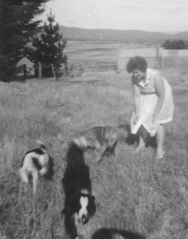 Playing with the dogs at View Bank. Dairy in the background