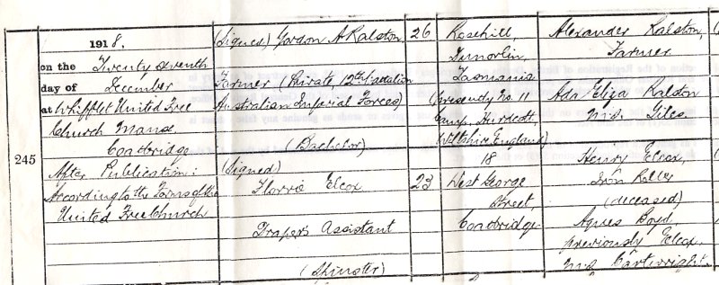 (03/05/1892 - 09/10/1980) 08RAG0 Father : RALSTON *Alexander Mother : GILES Ada Eliza Siblings: Elizabeth Catherine Mildred Russell Jean Norman Married : Elcocks (Elcox) Flora ( 27/12/1918 Coatbridge, Scotland) Issue : * Agnes Winston Dorothy Flora-Joyce (Polly) Ann Coral Heather |
